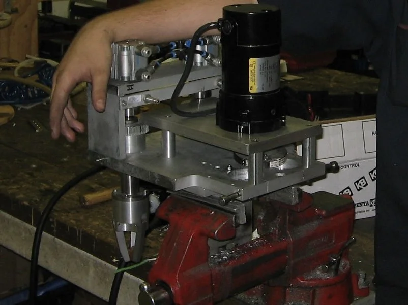 The machine had two separate motors that would turn down two separate lipsticks at the same time. The piece of equipment would fail regulary. this was not the machine that I was assigned to but it was a task that I remembered being very interested in. My task was to install a more modern gear motor that could tension the same style of timing belt and turn down two lipsticks at the same time with the same motor, just before the cap was placed on top.